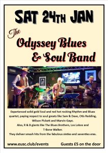 • Date TBC – ODYSSEY BLUES & SOUL BAND – Solid gold Soul and red hot rocking Rhythm and Blues quartet, paying respect to soul greats like Sam & Dave, Otis Redding, Wilson Pickett and Marvin Gaye. Also, R & B giants like The Blues Brothers, Los Lobos and T-Bone Walker.